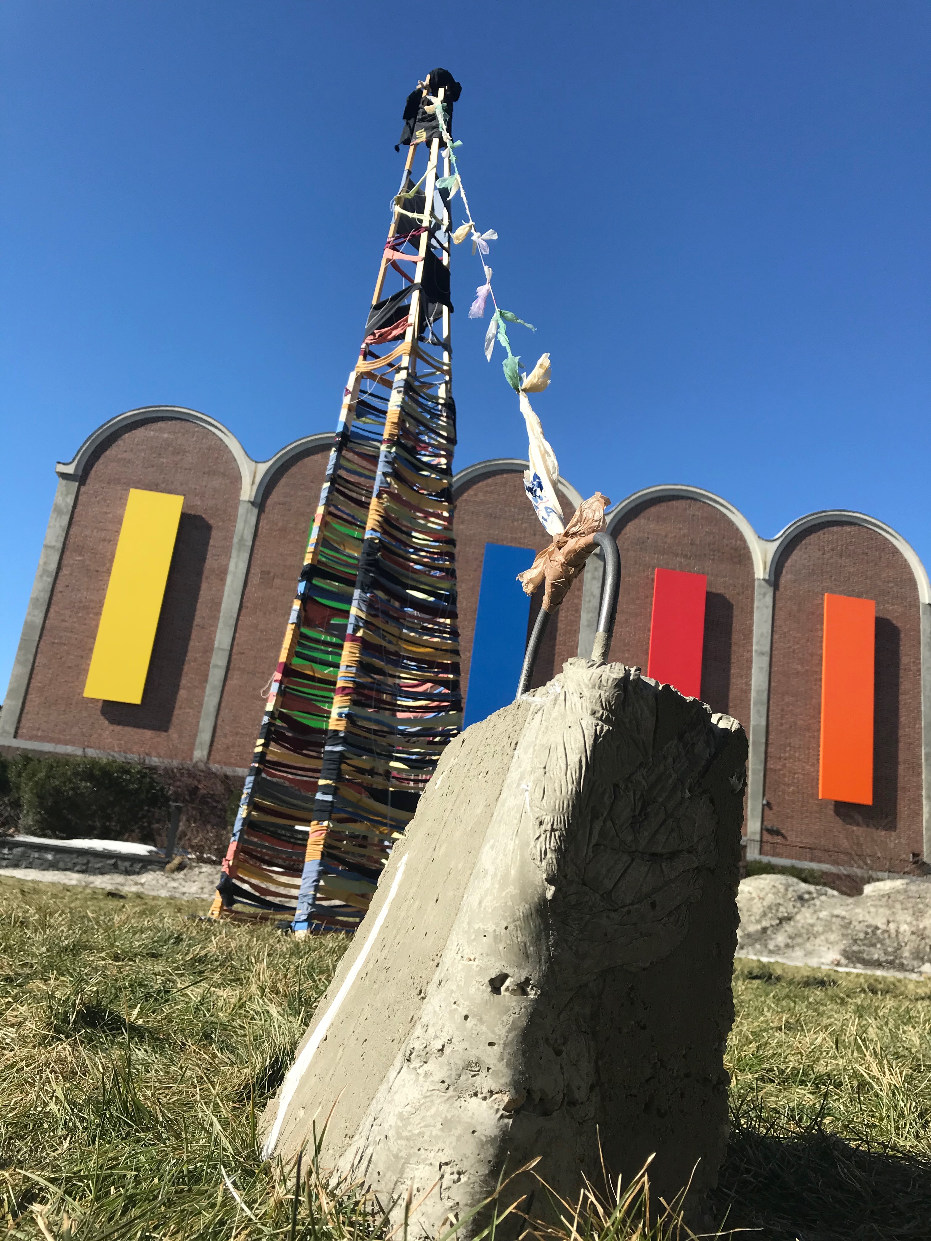 Wind Chimes, piano parts and found metal, 6x5x1 ft.